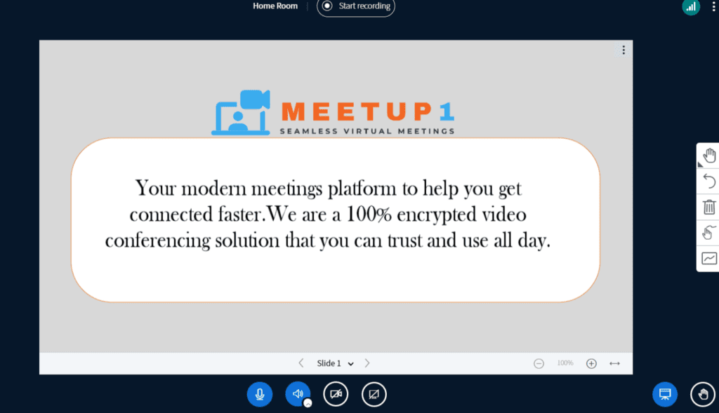 The presenter annotations are located to the right hand side of the presentation display in the Meetup1 interface.