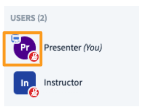 When a user has the presenter role, a presenter icon will appear over their avatar in the users list.