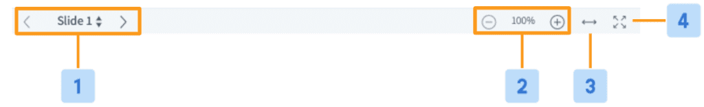 To navigate through your content, use the Slide Navigator [1] located in the presenter control panel. Advance through the slides using the forward navigation arrow, or go back with the backward navigation arrow.