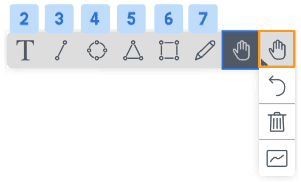 Select the Pan tool to display the other available whiteboard tools, which include:
