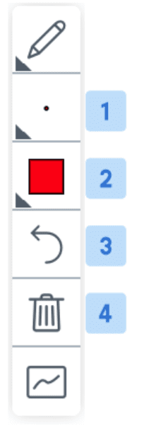 When the Pencil tool is enabled, additional menu options will appear, allowing you to adjust the Line Thickness [1] and change the Line Colour [2].